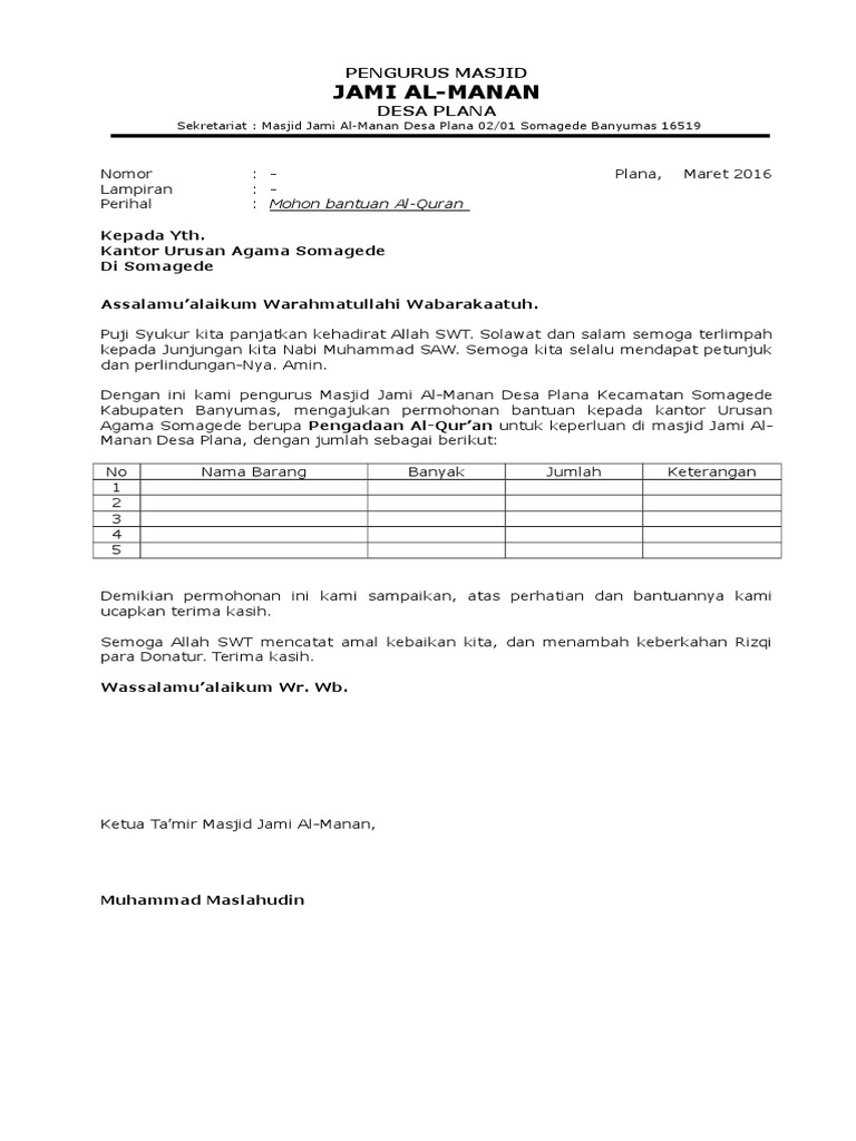 Permohonan Bantuan Mushaf Al Qur An from imgv2-1-f.scribdassets.com Sedangkan terkait dengan mushaf, maka tidak boleh bagi orang yang dalam kondisi berhadats untuk menyentuhnya, baik hadats kecil maupun hadats besar. Komunitas 19:36, 20 mohon bantuan yang mempunyai akses ke kbbi untuk mengecek kembali mengenai ejaan kbbi. Bantuan prihatin nasional adalah salah satu bantuan yang disediakan oleh kerajaan… untuk mohon bpn ini sudah pasti melibatkan ramai orang. They are usually only set in response to actions made by you which amount to a request for services such as setting your privacy preferences, logging in or filling in formsyou can set your browser to block or alert you about these cookies, but. Bantuan gratis untuk tugas sekolah bantuan gratis untuk tugas sekolah. Permohonan bantuan rehabilitasi asrama pondok pesantren dar al qur'an. Survey nya ringan tidak memerlukan pemikiran rumit, mohon penilaian secara apa adanya menurut apa yang ada dalam benak anda. Instruksi tambahan untuk pengguna android.